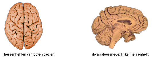 Je kan het brein in de lengte in tweeën delen en dan houd je twee hersenhelften over, hemisferen genoemd. Elke helft controleert de beweging van de spieren aan de andere kant van je lichaam. Je rechterhelft zorgt ervoor dat je je linkerarm kan bewegen. De hemisferen wisselen informatie met elkaar uit via de hersenbalk, een zenuwbaan die beide helften verbindt.