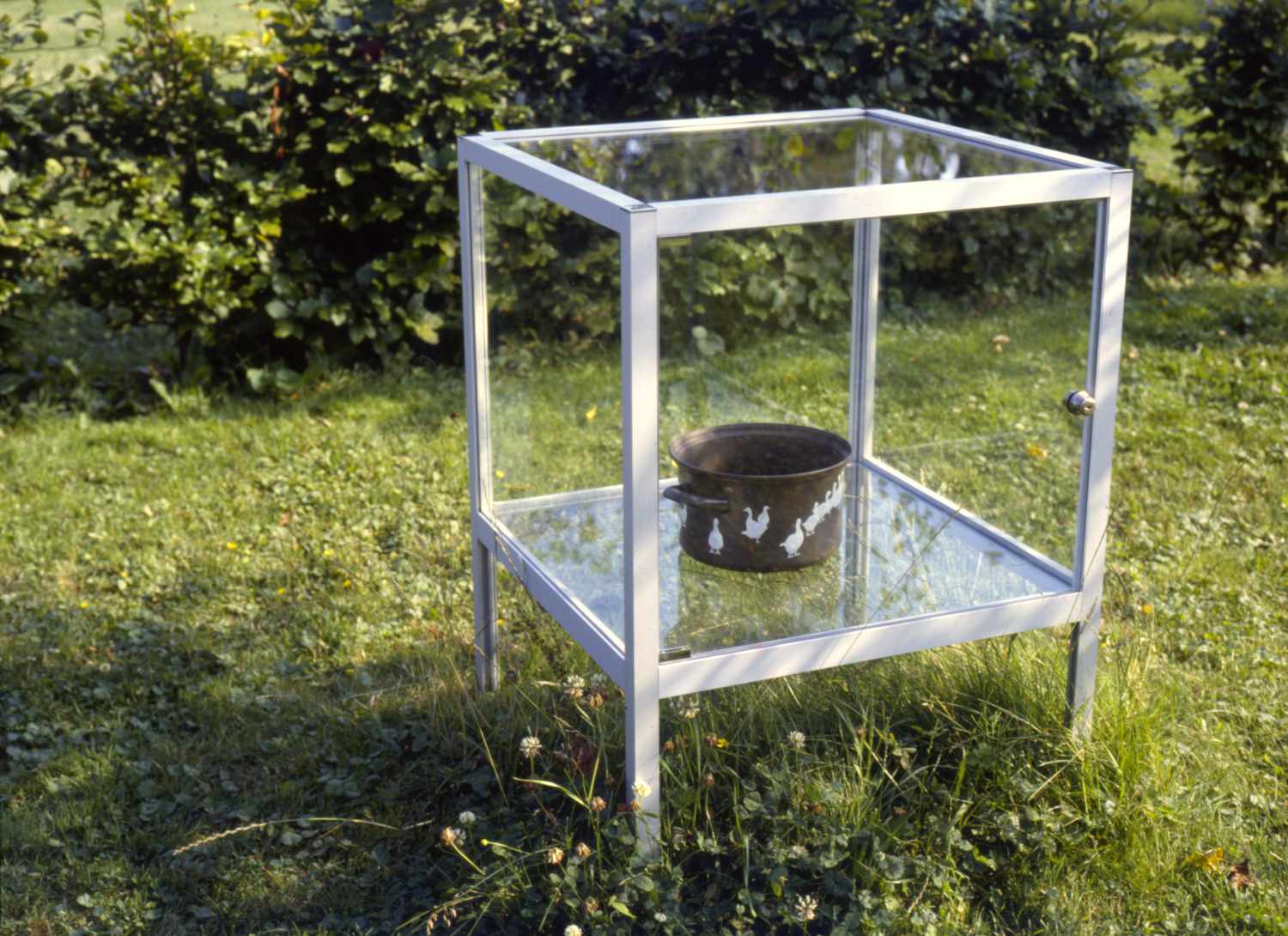 Silkscreen on metal, glass, aluminium, 90 x 90 x 90 cm